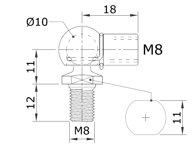 M8 Winkelgelenk Edelstahl 316 V4A (18mm) (max. 800N)