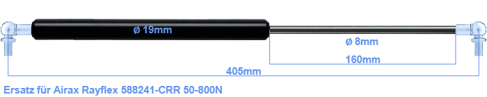Ersatz Gasdruckfeder für Airax Rayflex 588241-CRR 50-800 Newton. Geeignet für Kugeln mit Durchmesser von 10mm. Die Kugel ist inbegriffen. Marke: Hahn Gasfedern.