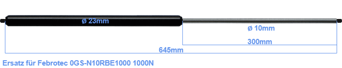Ersatz Gasdruckfeder für Febrotec 0GS-N10RBE1000 1000 Newton. Gewinde: M8. Marke: Hahn Gasfedern.