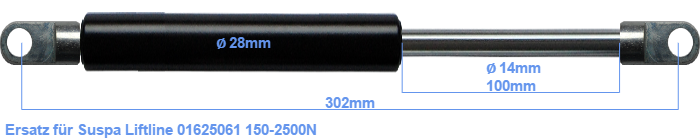 Ersatz für Suspa Liftline 01625061 150-2500N